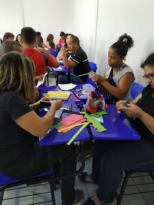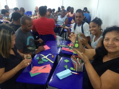 Na oficina os alunos puderam visualizar as figuras em suas diferentes formas e construir os sólidos geométricos de papel com o intuito de facilitar o ensino de geometria espacial. E através do aplicativo Geogebra foi possível estimular a percepção visual das figuras espaciais através da planificação de uma figura tridimensional além de introduzir os conceitos de vértice, arestas e faces.